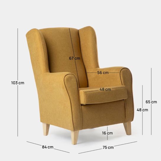 Esta butaca combina diseño elegante y máximo confort, ideal para cualquier espacio. Su estructura firme y acolchado suave la convierten en la opción perfecta para el salón, dormitorio o recibidor.